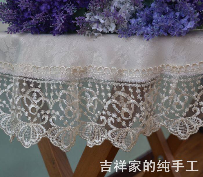 Foreign trade European-style pastoral lace round table fabric tribute section jacquard decorative cover towel 90CM round beige promotion