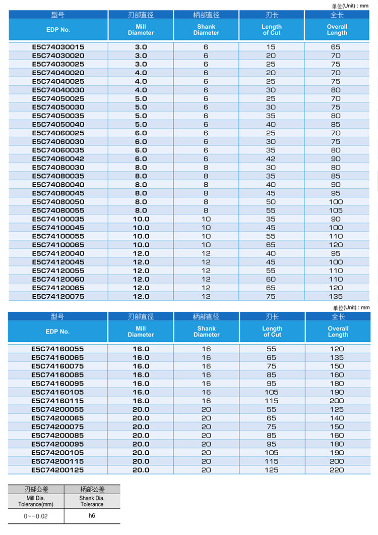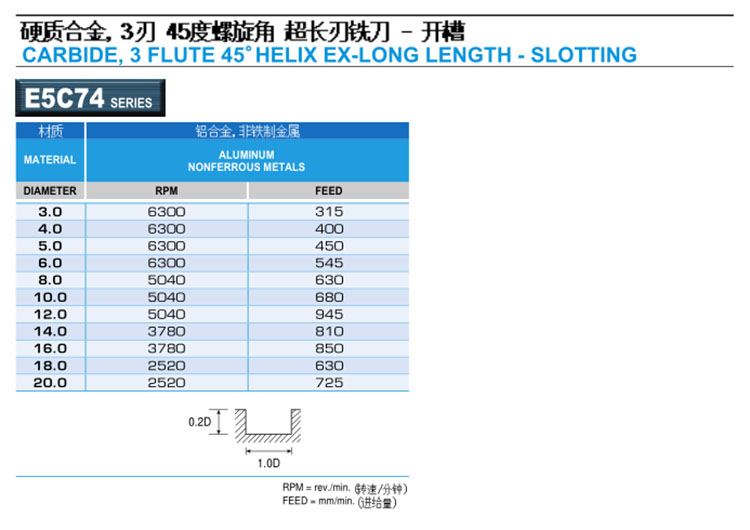 South Korea YG-1 aluminum alloy with tungsten steel extended milling cutter E5C74 3 blades