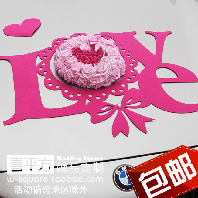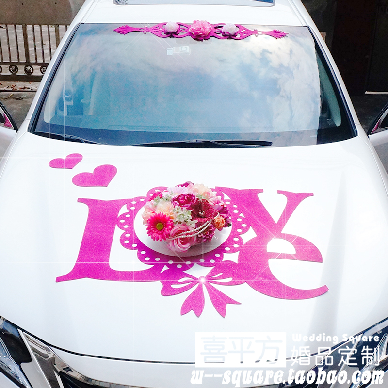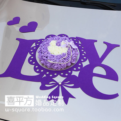 Car brow 1 aft ring 1 rear illuminated mirror flowers 1 car door flower 1 spot adorned with flowers 1 pink Love word wedding gift car package purple loveword package red loveword package love