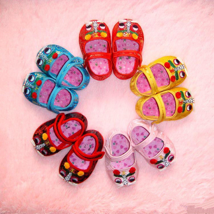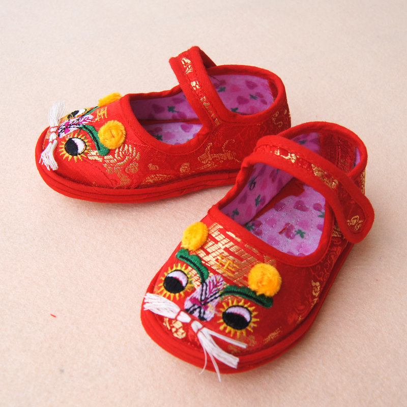 Spring, summer, autumn and winter men and women baby full moon 100 days tiger head shoes baby children Tang suit cloth shoes hard ground soft bottom toddler shoes
