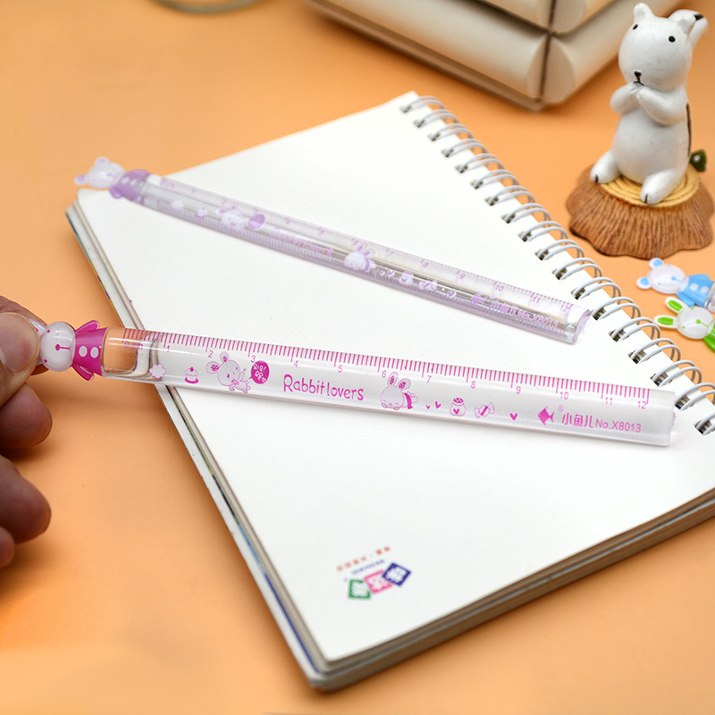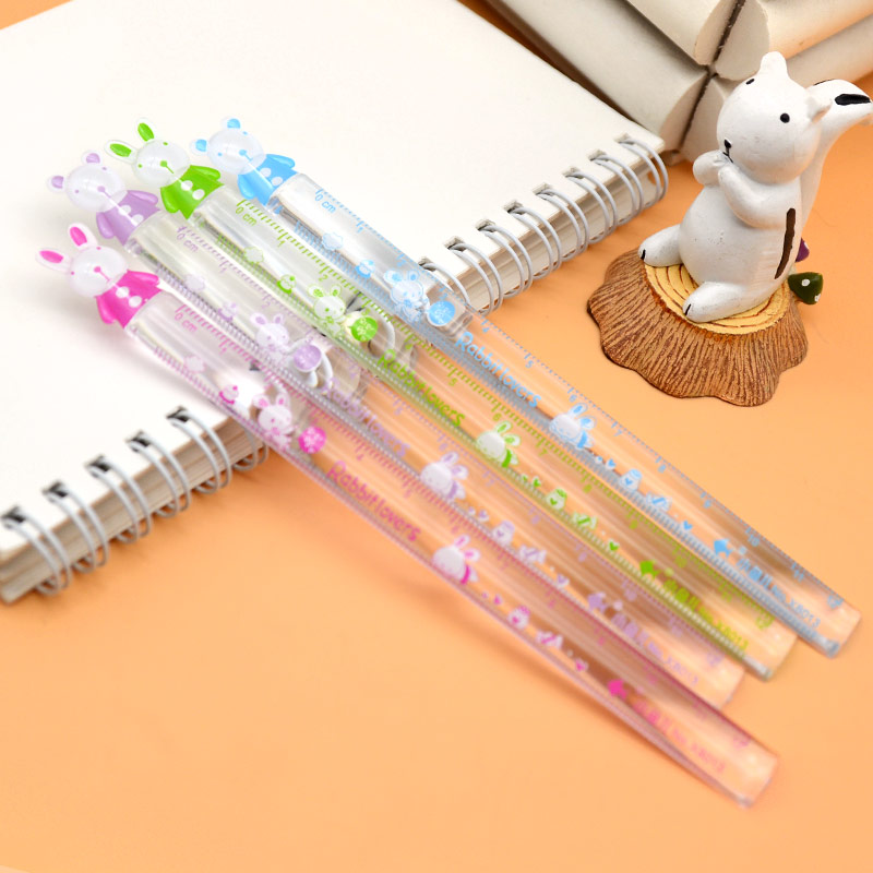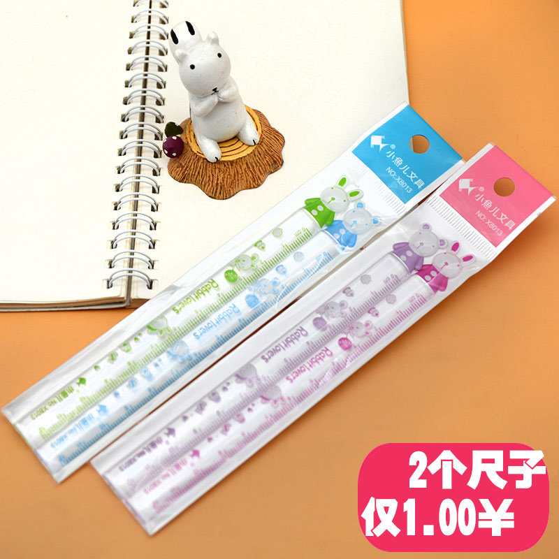Cute bear rabbit on ruler plastic straight ruler Han edition of creative stationery wholesale elementary school prize learning supplies