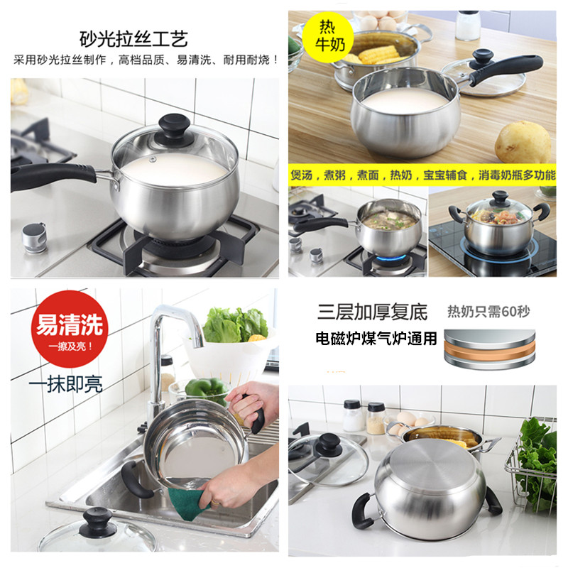 304 stainless steel milk pot non-stick pot boiling hot milk pot household food supplement small pot mini instant noodle small boil pot soup pot