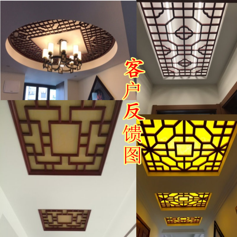 East Yang Wood Carvings Round Suspended Ceiling Wood Lattice Special Lampshade Lattice Lamp Disc Hollowed-out Shed Top Grille Dining Hall Suspended Ceiling Decoration