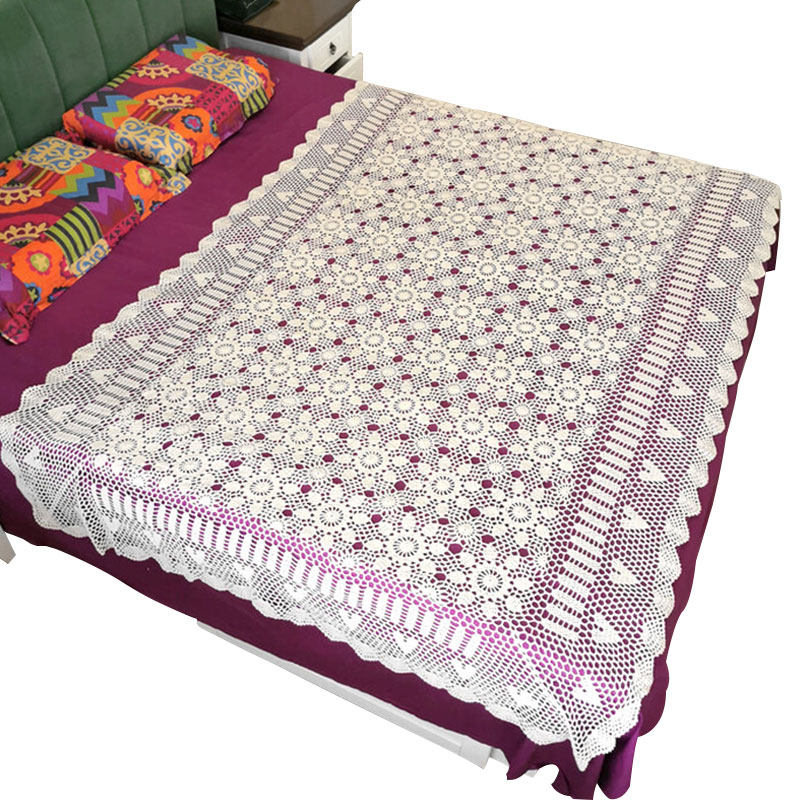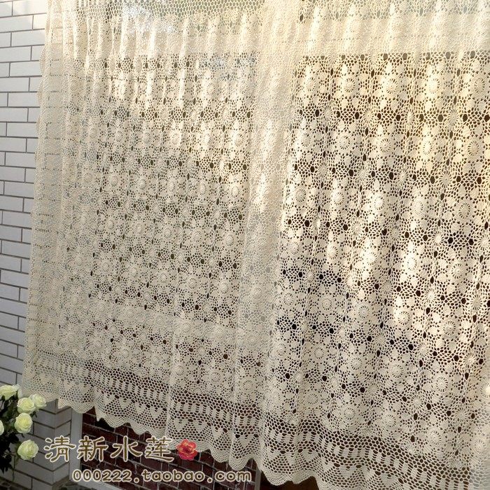 Fresh water lotus hand crochet hook needle European and American style countryside Chinese retro pure cotton semi light transmission finished curtain hook flower bed cover