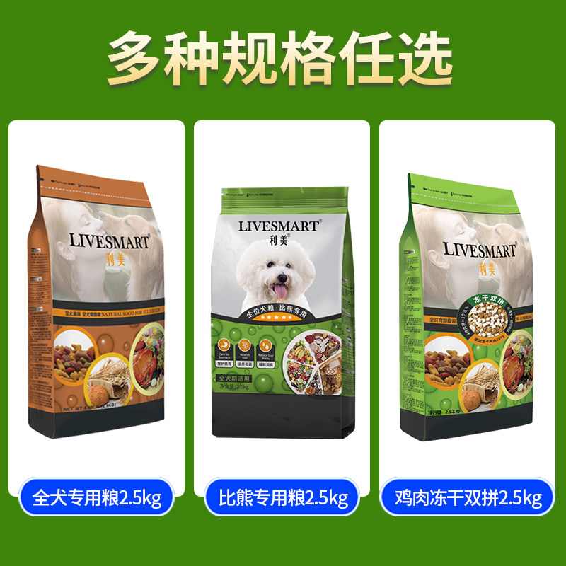 Limei Bi bear dog food 5kg special grain into puppies universal white small dog 10 chicken freeze-dried double fight