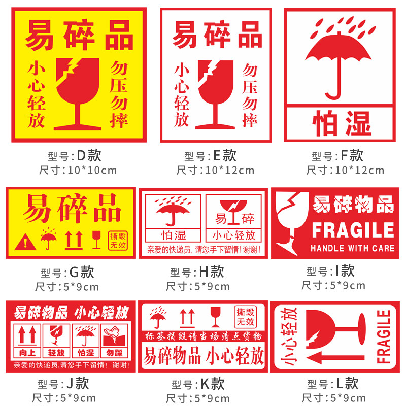 Express label fragile stickers carefully take gently to be afraid of wet, do not weigh heavily prohibit inverted warning logistics