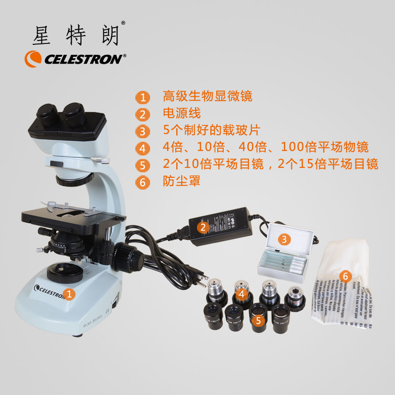Celestron 1500x Flat-field Achromatic Biological Microscope 44110, USA
