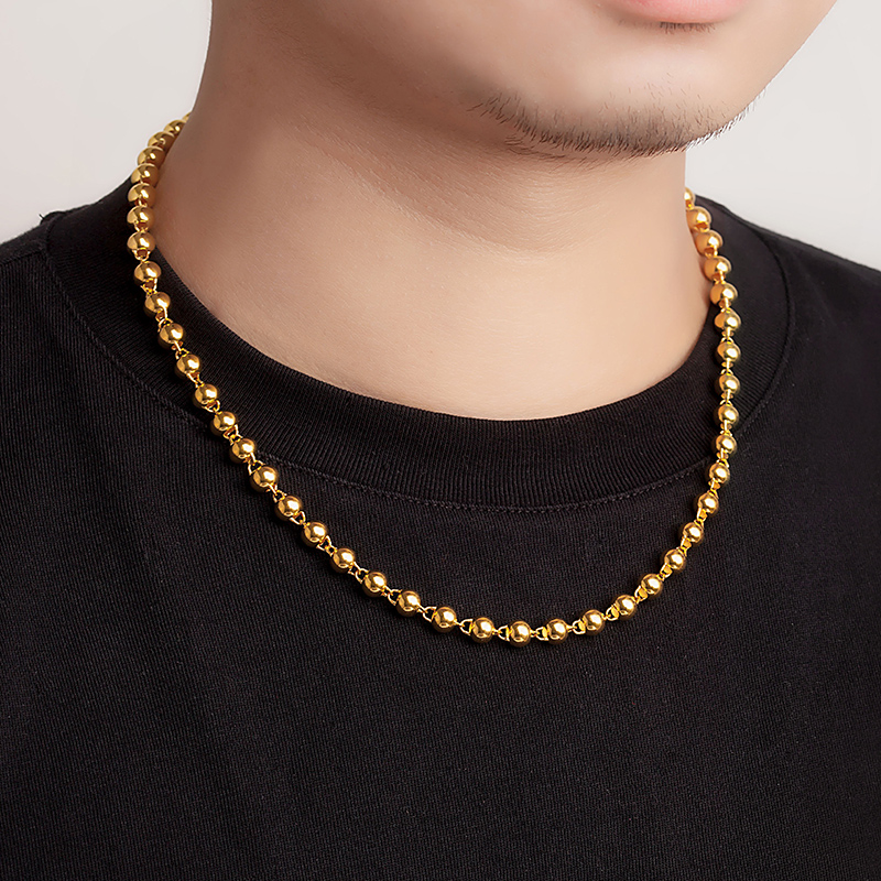 Zhaoliang Jewelry Gold Necklace for Men and Women Gold Pure Gold 999 Gold Chain Pearlescent Round Beads Customized