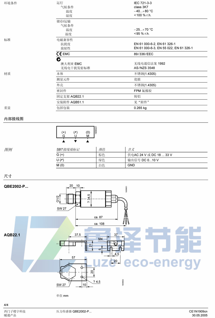 QBE2002-P40 air water hydraulic pressure sensor air pressure water pressure