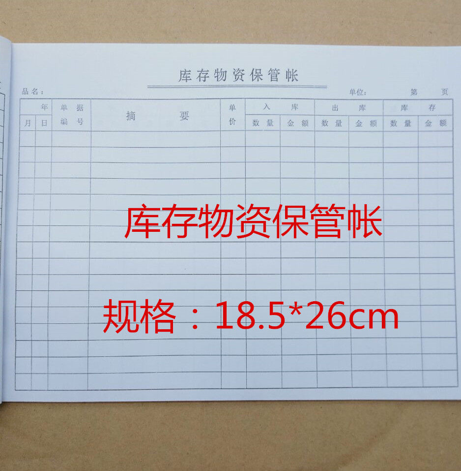Inventory account Cash account Kraft paper cover Inventory material storage flow Cash account Entry and exit account Book page