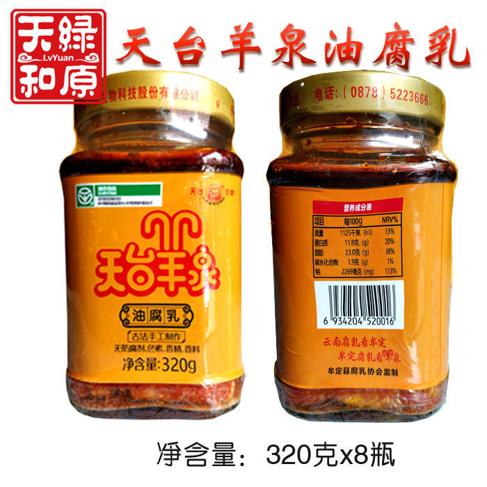 Mouding Tiantai Yangquan Oil Curd Milk 320g * 8 bottles of Yunnan Chuxiong specialty moldy tofu frankincense spicy brine rot under the meal