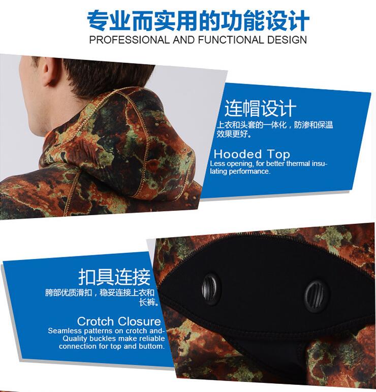 Camouflage Diving suit split male specialized scuba deep diving 5mm fishermen hunting fishermen cabbage diving clothes to keep warm protective protection