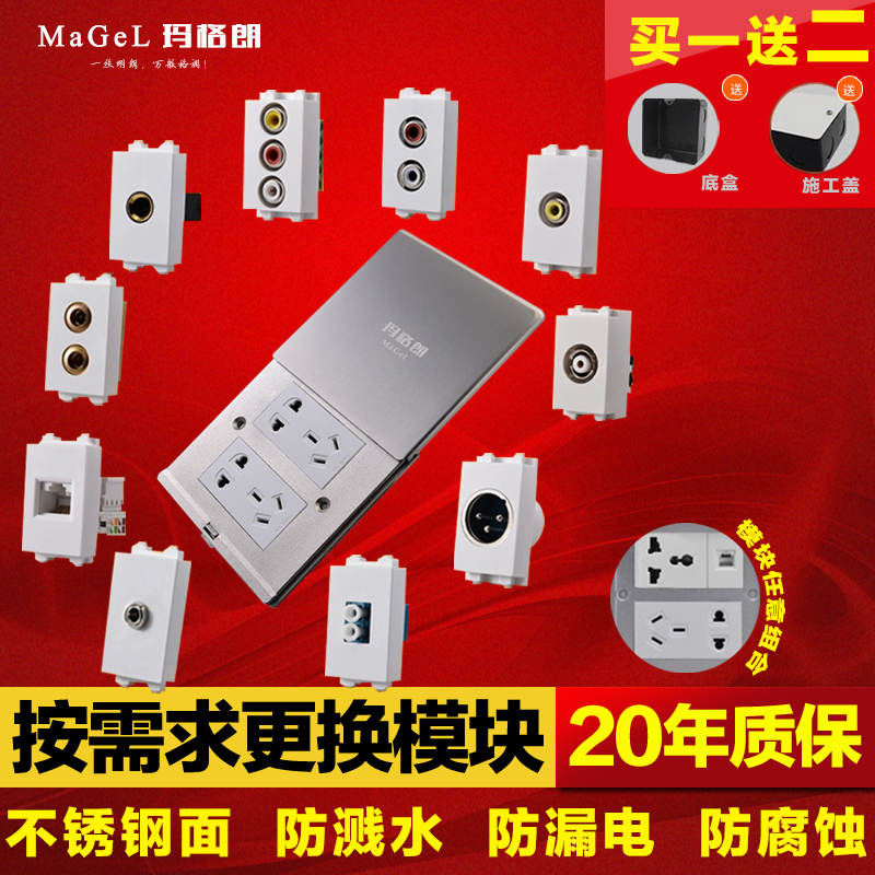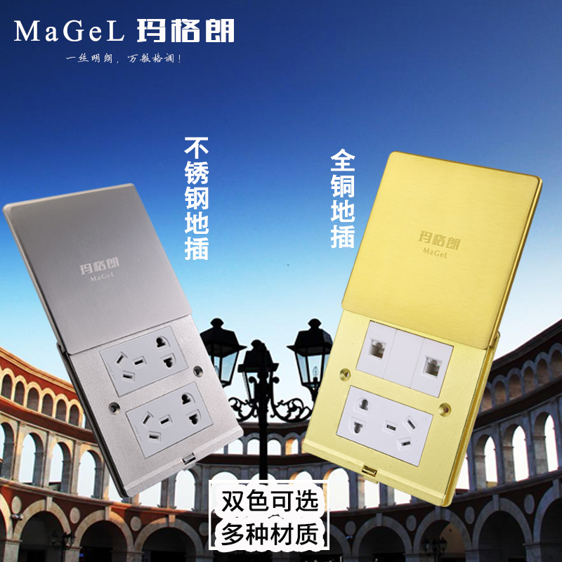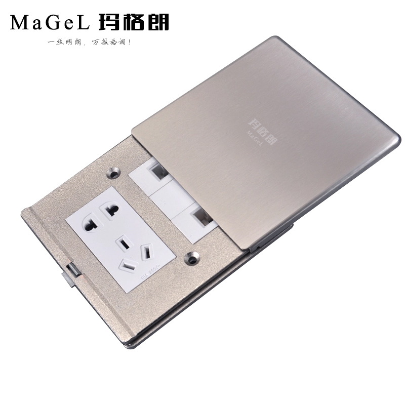 Magelang stainless steel anti-horizontal push type five-hole slide floor plug with computer phone floor socket floor socket