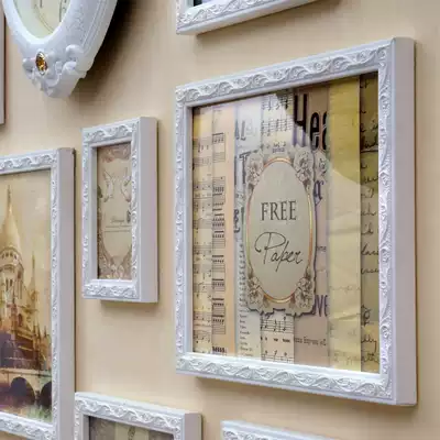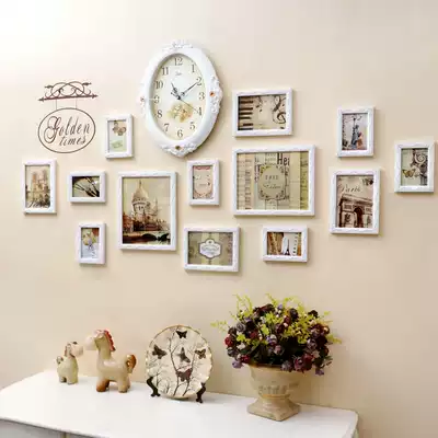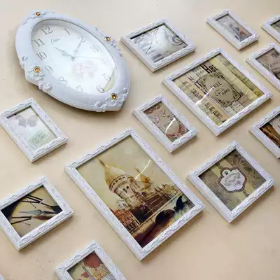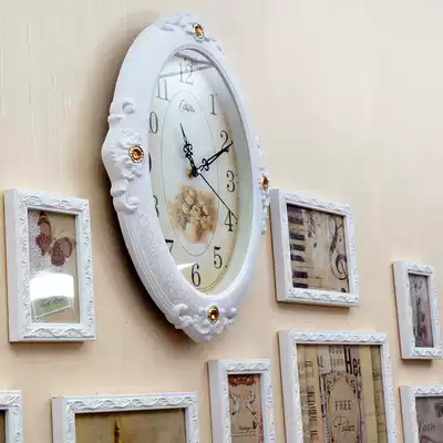 European-style wall clock photo wall Solid wood carved photo frame wall creative clock living room bedroom combination photo wall []