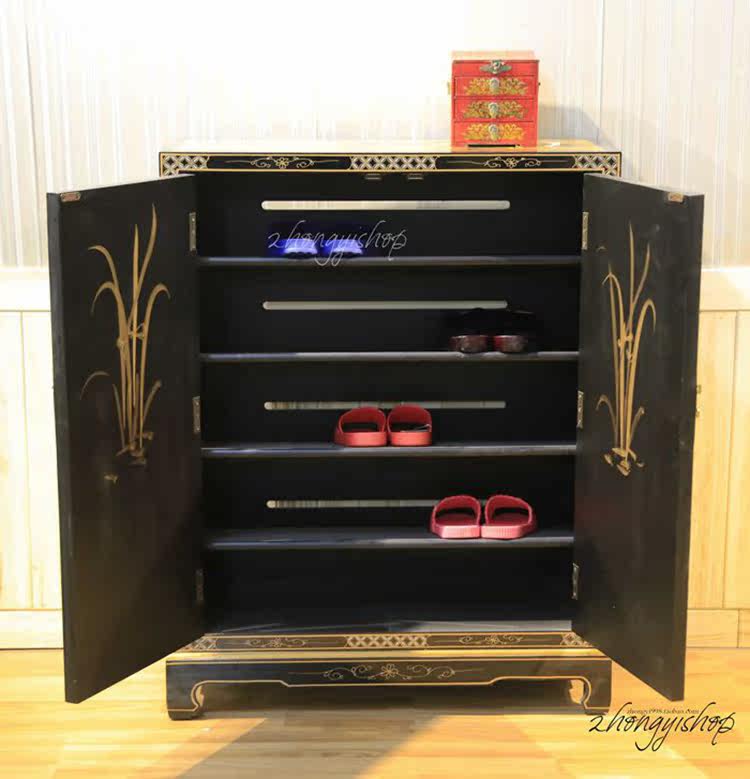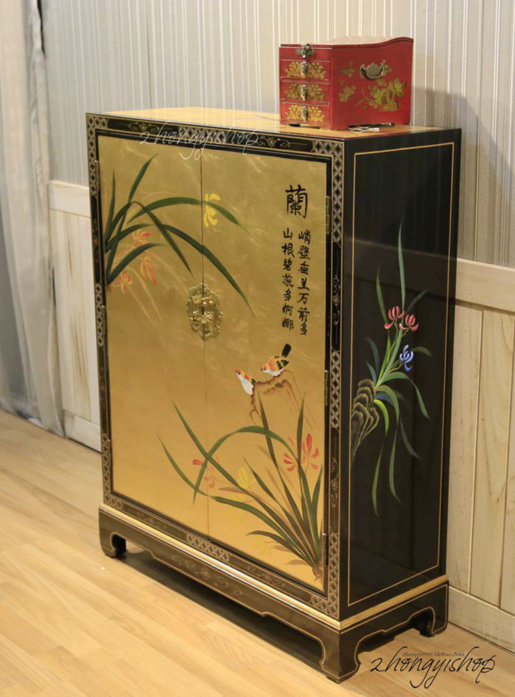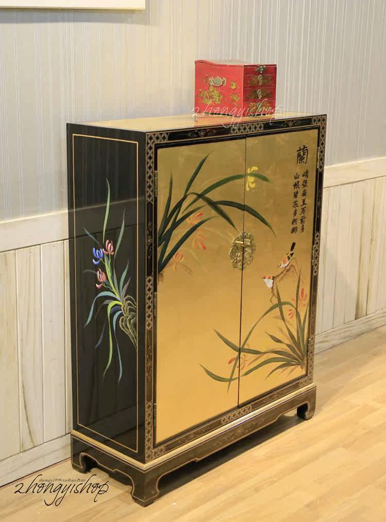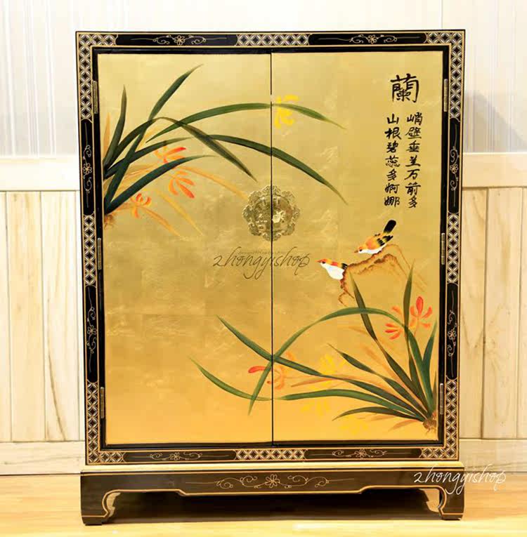 Modern new Chinese classical gold leaf hand-painted antique furniture plum orchid chrysanthemum bamboo shoe cabinet porch cabinet double door cabinet