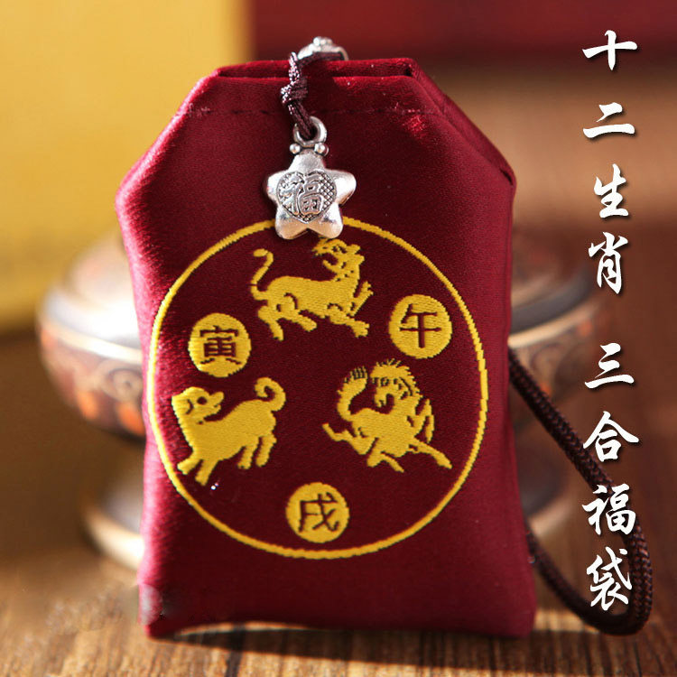 Twelve 12 Zodiac Three-in-One Lucky Bag Small Tips Talisman Blessing Bag Embroidery Sachet Small Cloth Bag Charm Bag