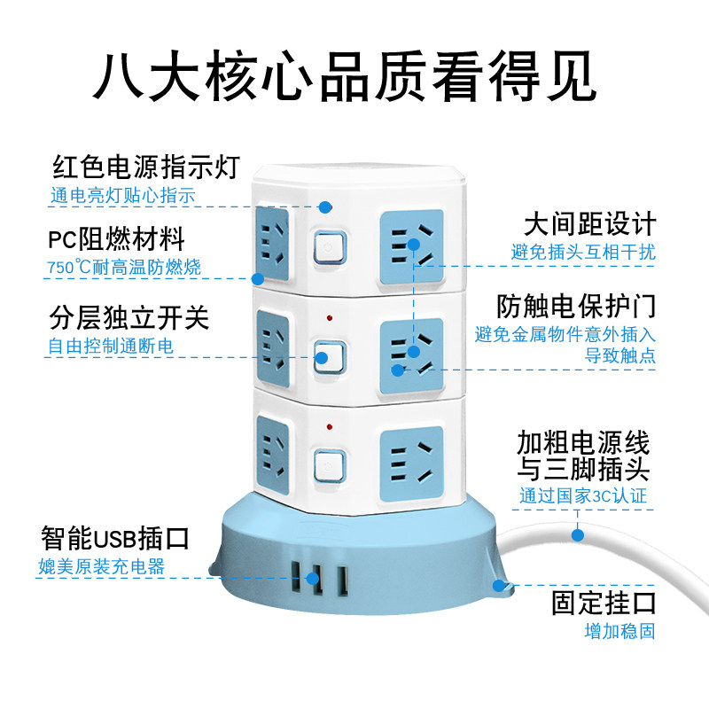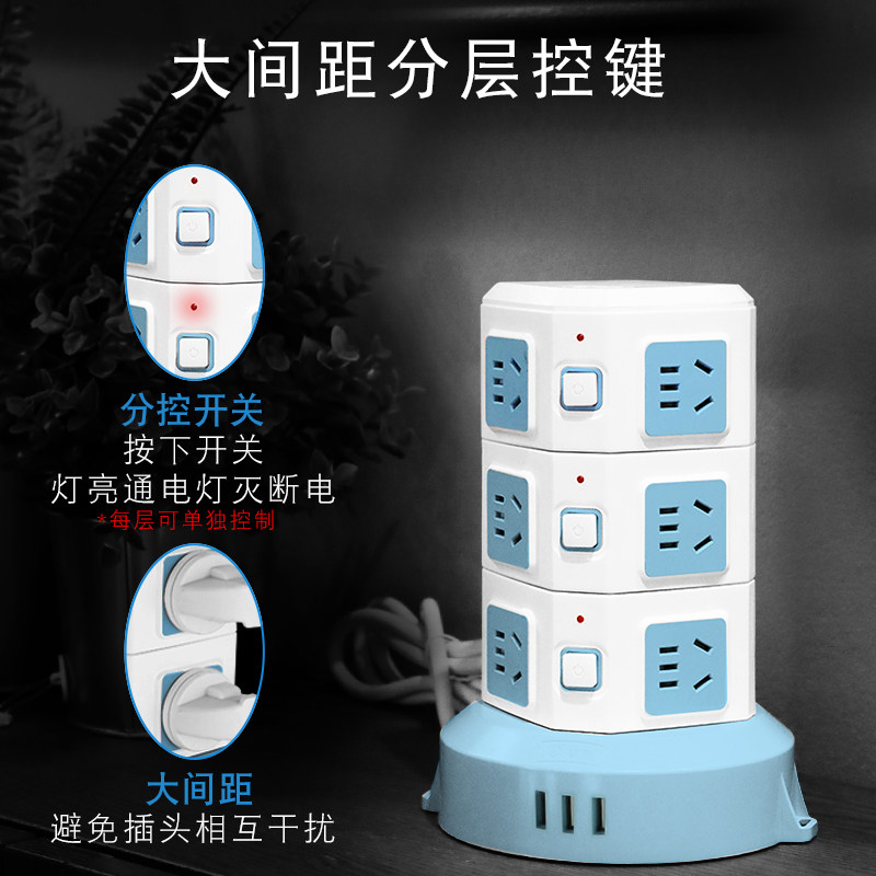 Breeze USB vertical multi-function socket household Rubik's cube row extension cord power converter wiring board extension cord