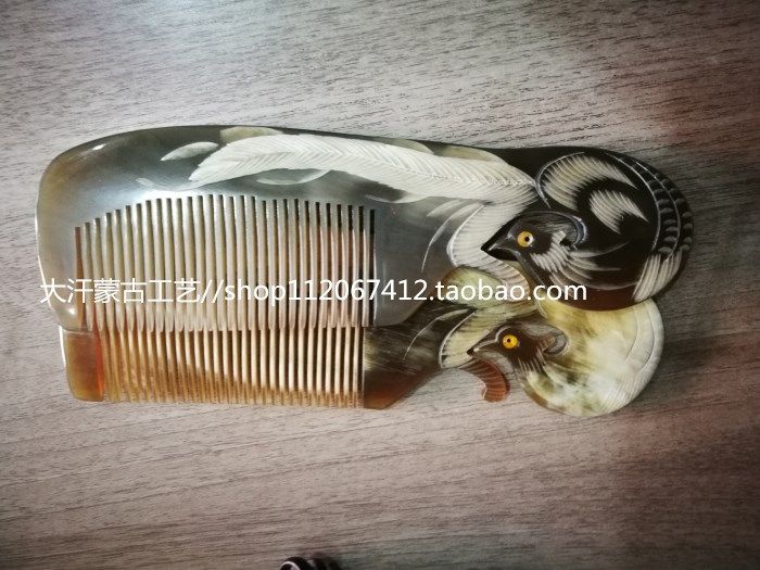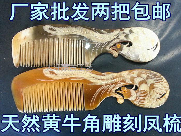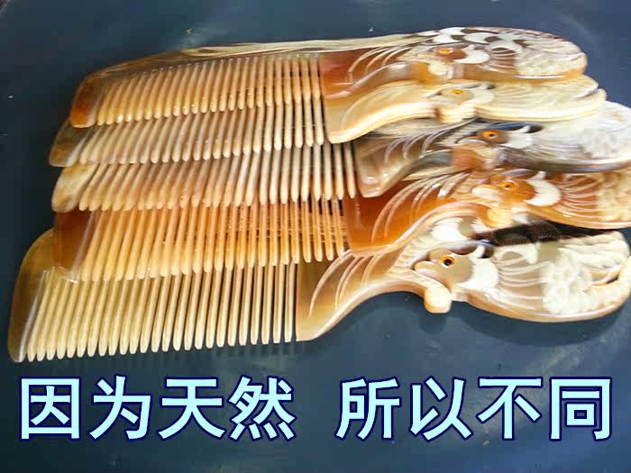 Horn comb Inner Mongolia natural scalper horn hand carved Phoenix comb 18cm gift comb anti-hair loss solid hair