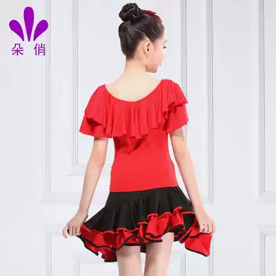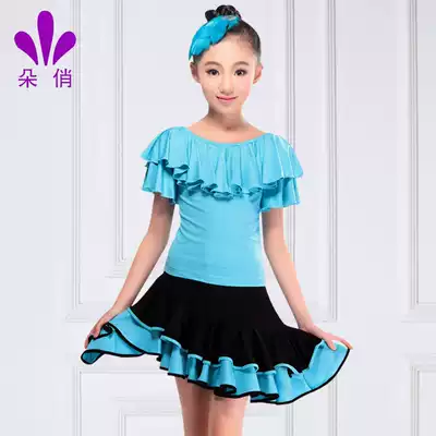 Duoqiao children's Latin dance practice suit Autumn children's dance practice suit short-sleeved top short skirt suit performance suit