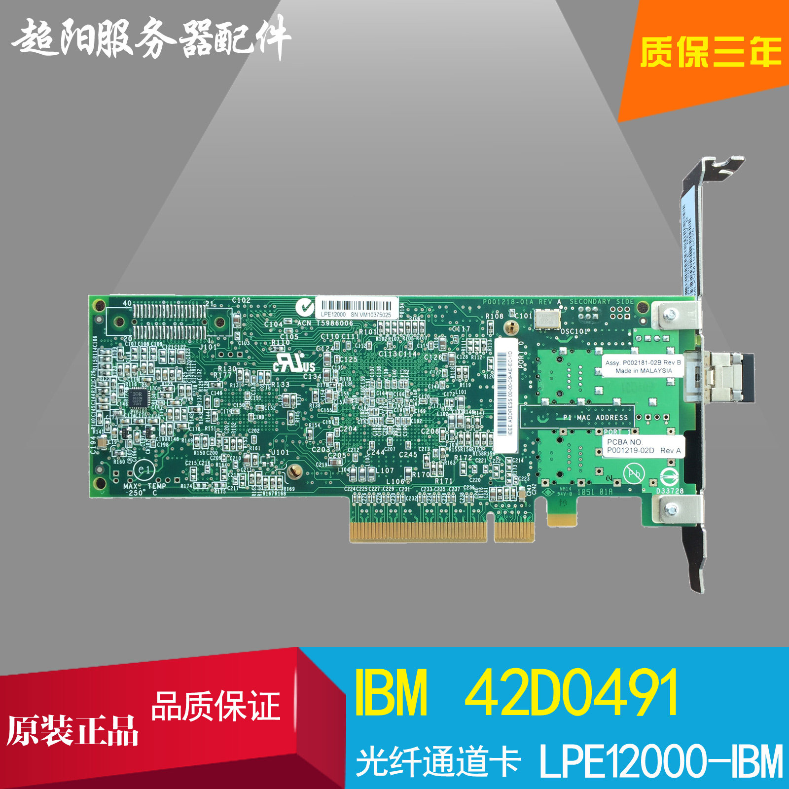 Original IBM EMULEX LPE12000 42D0485 42D0491 8Gb single-port fiber optic card with module