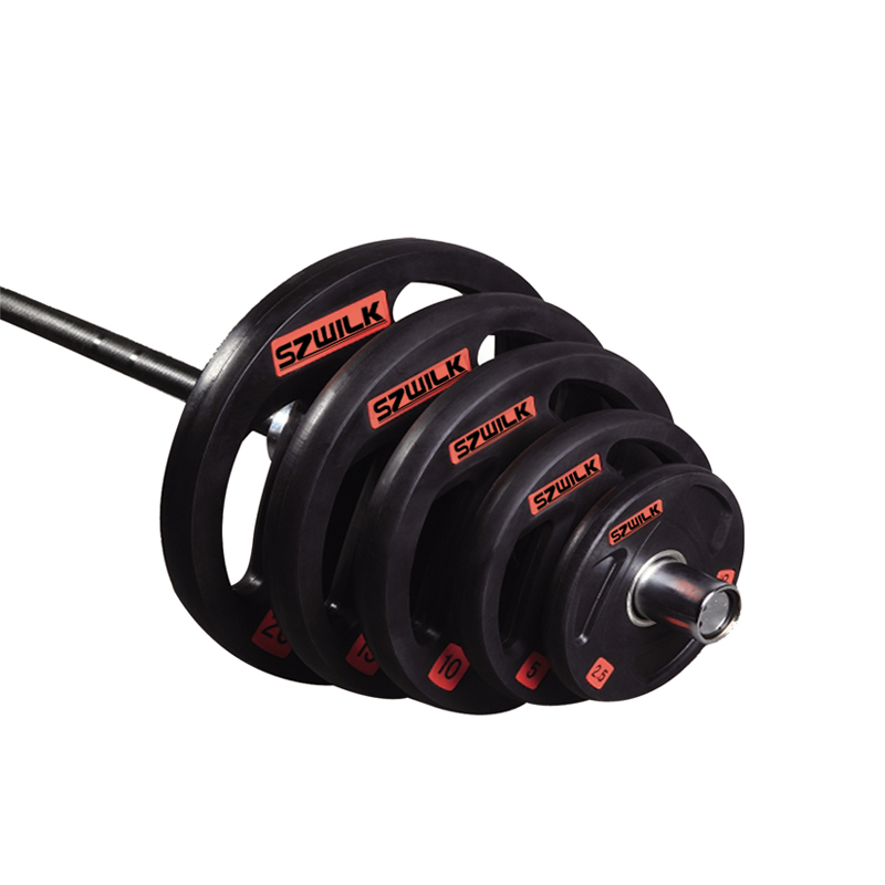 Colorful triple-hole hand grip PU barbell sheet gym bag rubber barbell disc multifunctional sleeper exercise fitness equipment