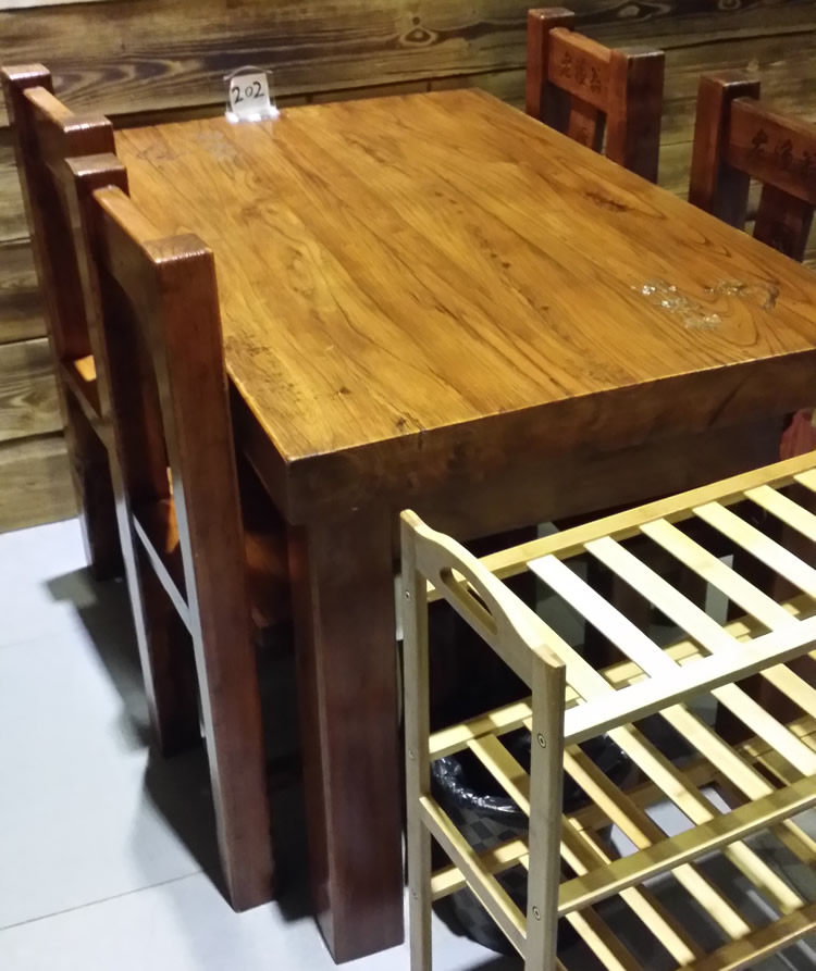 Custom-made old elm dining table and chair combination thick solid wood dining table and chairs long table tea table old fisherman's dining table
