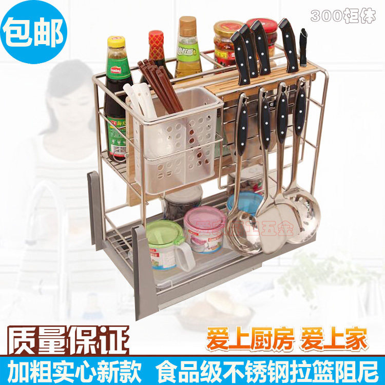Seasoning Pull Basket Kitchen Overall Cupboard Food Grade Stainless Steel Kitchen?The seasoning basket seasoning blue of the car drawer-type shelve