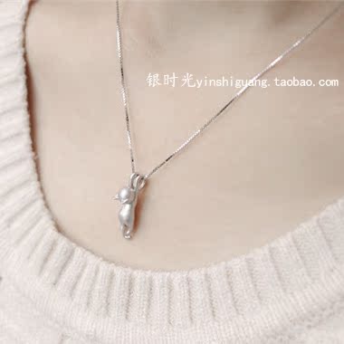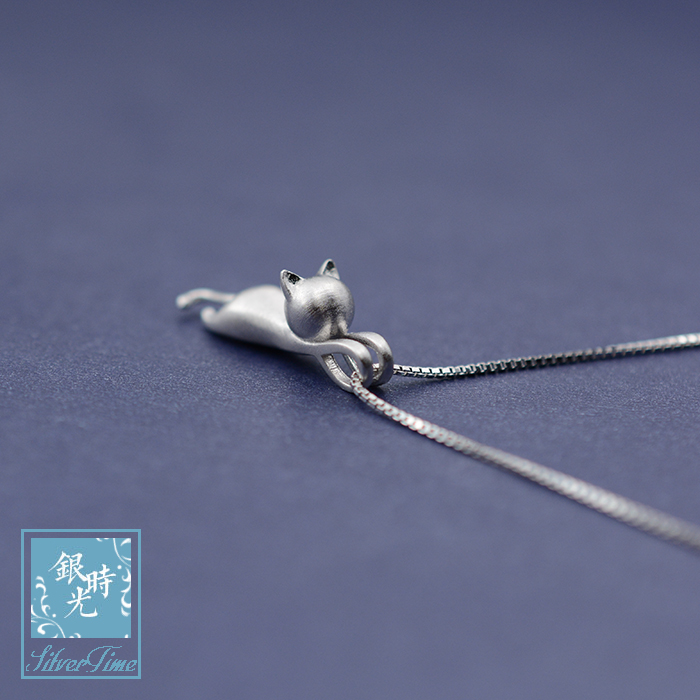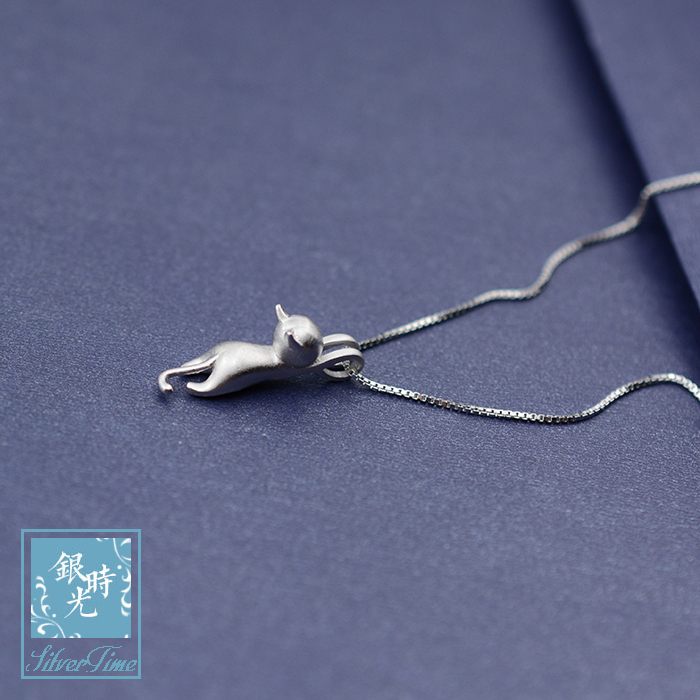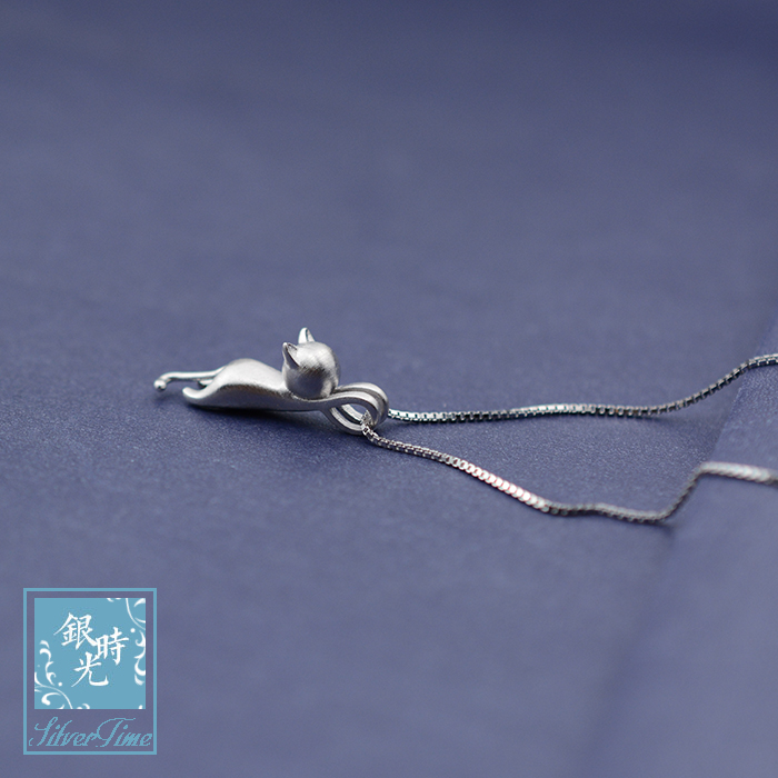Designer custom made of S925 silver pure handmade drawing solid small cat necklace pendant trekker chain box chain