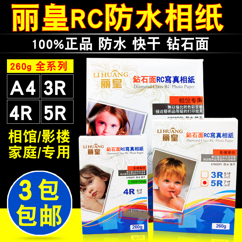 Li huang 260g 5 inch 6 inch 7 inch A4 A3 waterproof photo paper RC high light inkjet Bluetooth printing high light photo paper