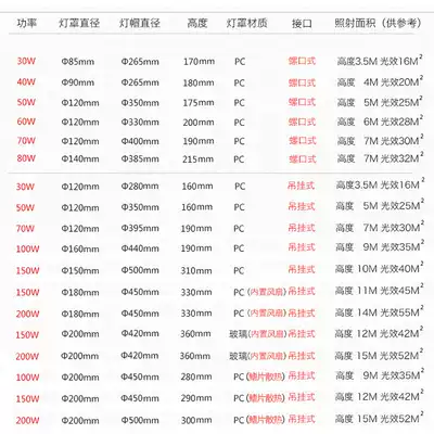 200W White-bright-hanging (with fan) glass cover 70W White-High-bright-hanging Type 150W White-High-bright-hanging type (with fan) glass cover 150