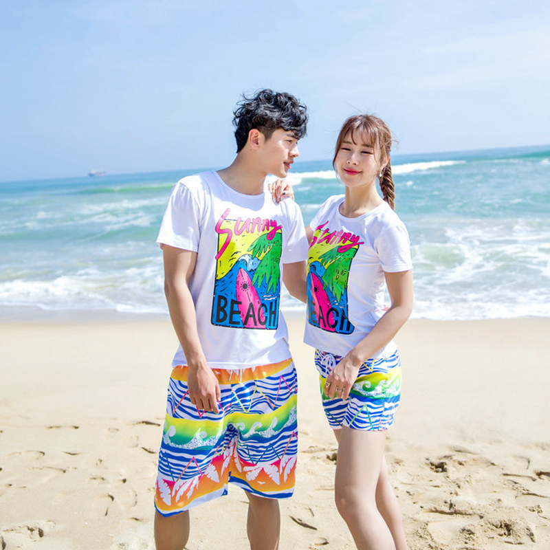 Korean version of the couple beach pants quick-drying men's and women's T-shirts lovers Maldives seaside travel holiday suit