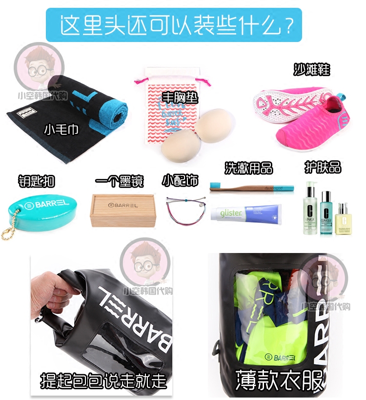 South Korea's new Korean bucket type transparent multifunctional foldable three-dimensional waterproof swimming diving travel bag