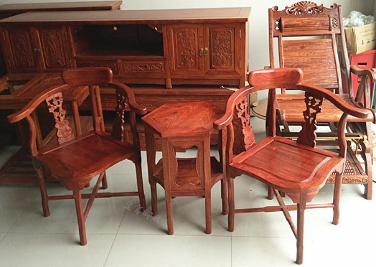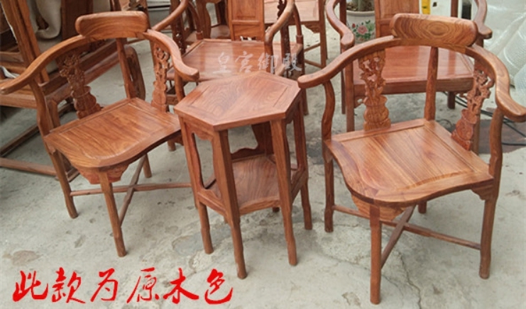 Royal Palace Mahogany African Huanghuali Couple Chair Solid Wood Dining Table Leisure Double Chair Hedgehog Red Sandalwood Three-piece Set