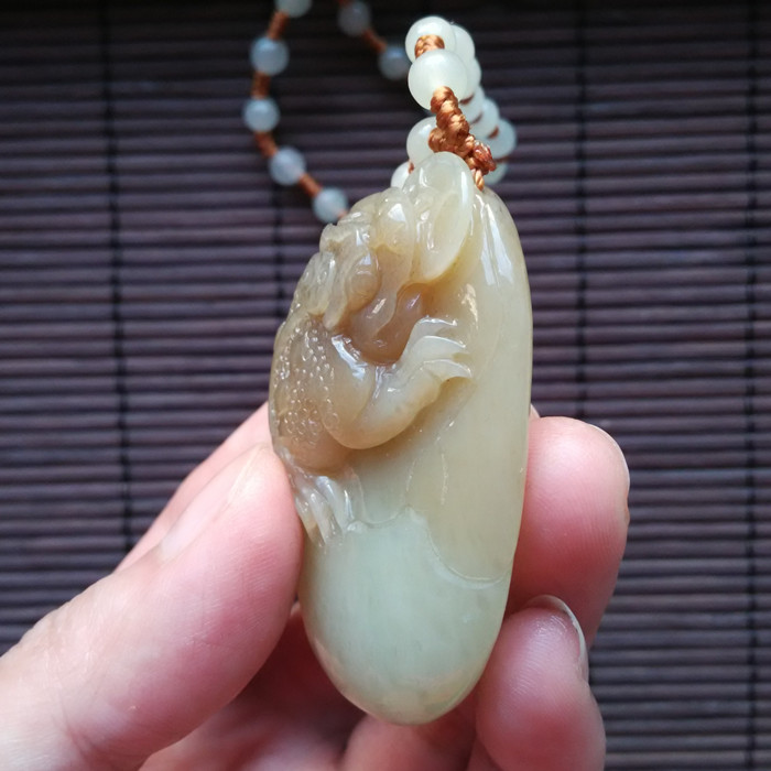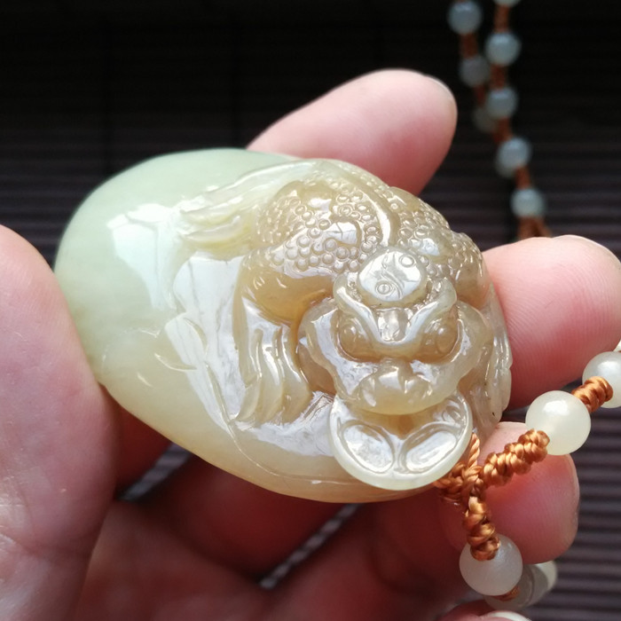 Boutique yellow and white jade pendant Rough stone Golden toad brown sugar Pretty color Xiuyu Big money money rolling fortune into treasure gift