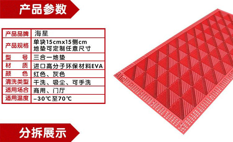 Three-in-one assembly and anti-slip plastic module dust-proof combined hydrophobic mat