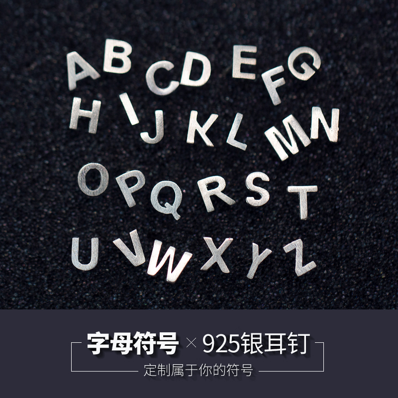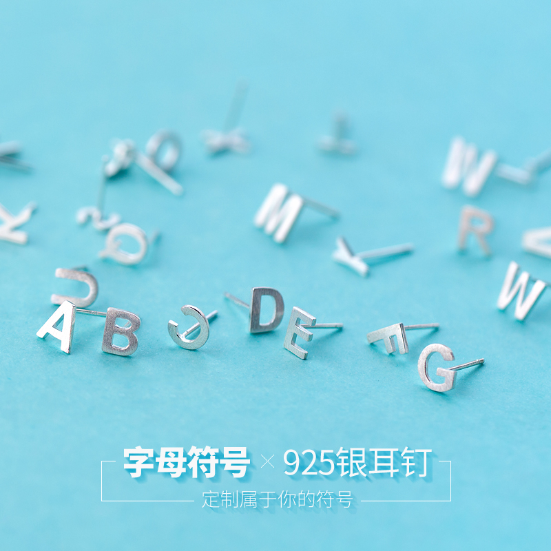 S925 silver ear nail minimalist fashion personality Temperament Student 26 English letters Lovers Ear Ornaments