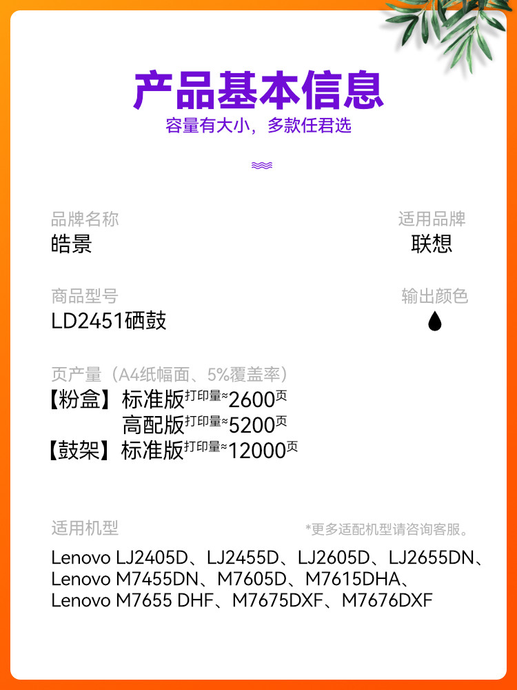 Applicable to Lenovo LT2451H cartridge LJ2405 toner cartridge LJ2655 M7605D M7615DNA toner cartridge M7655DHF M7675dxf LJ2605d 2655 cartridge M7675dx