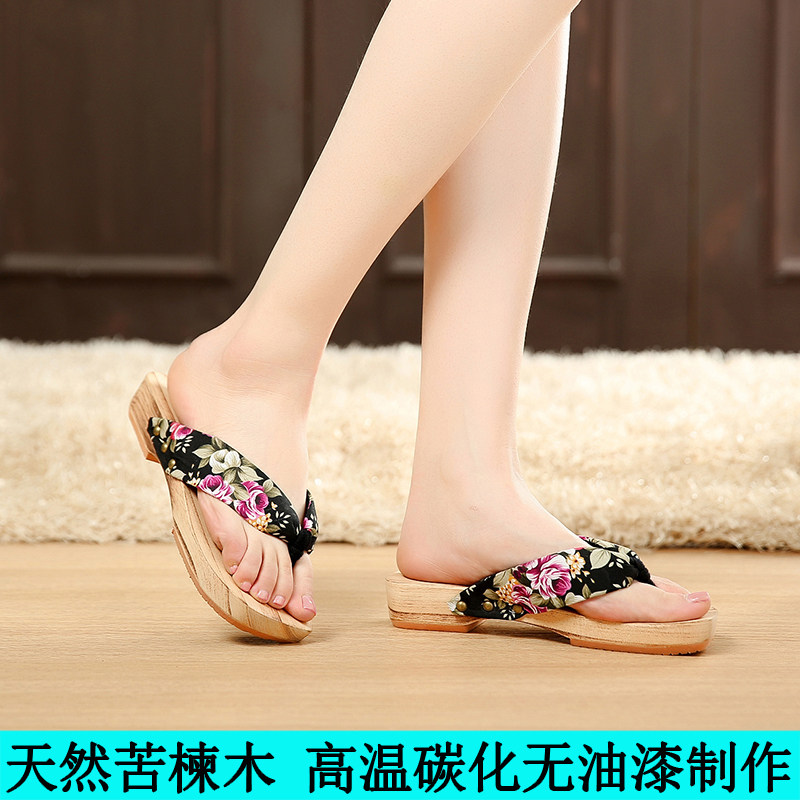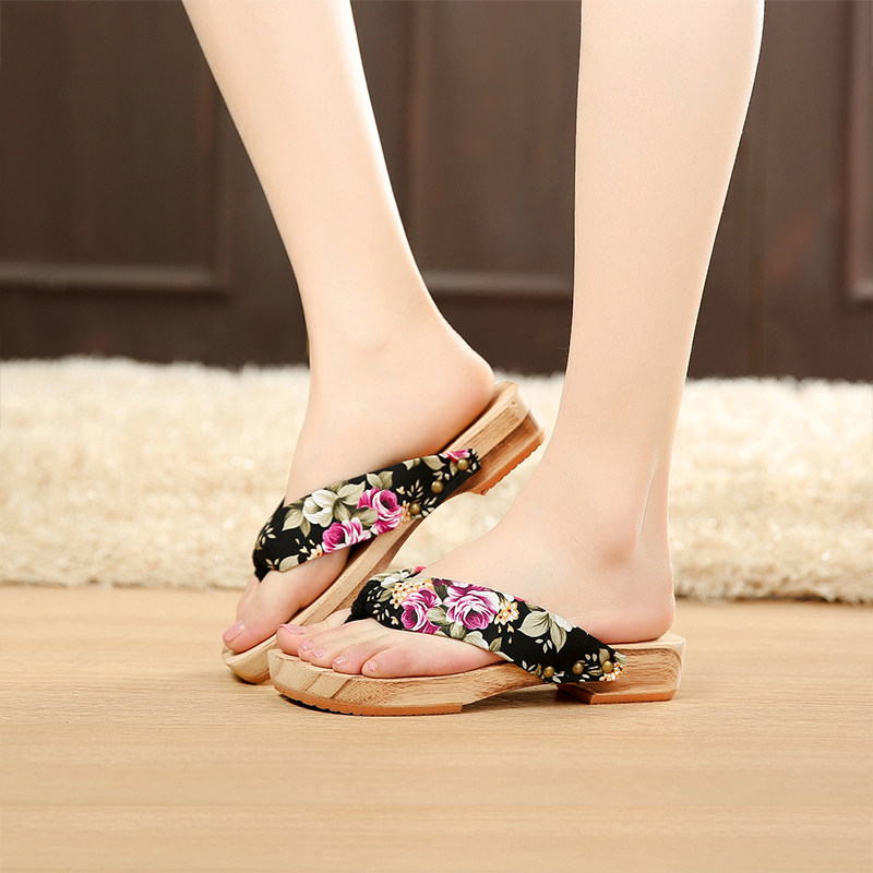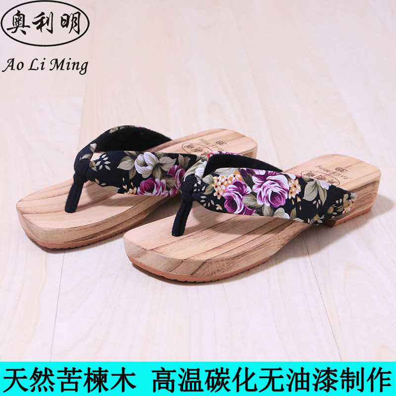 2019 summer new slopes heel herringbone wood slippers women's summer home sandals wood sandals