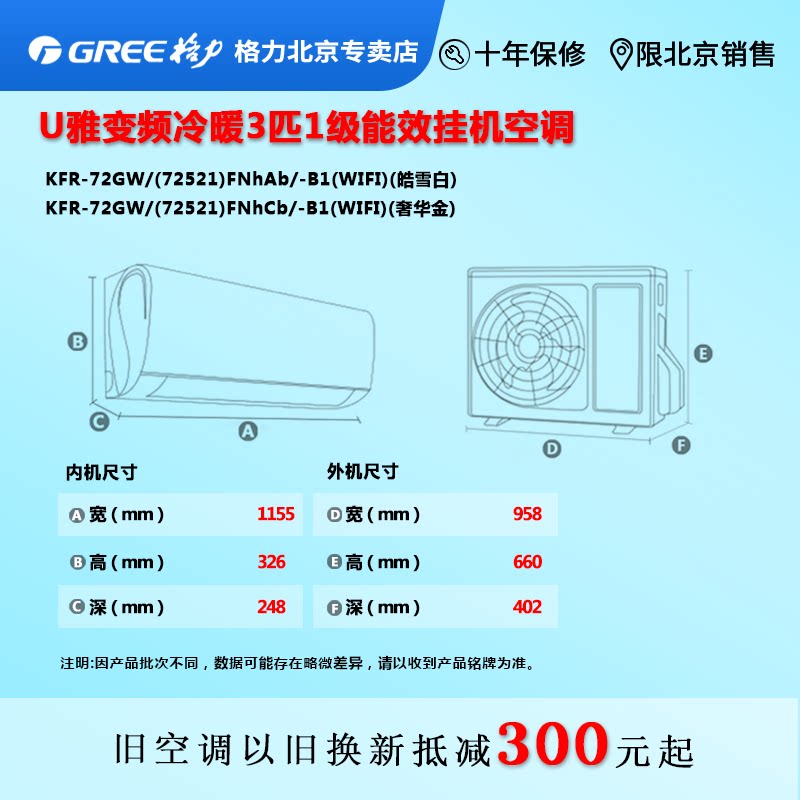 Gree Beijing Gli U Ya KFR72GW72521FNhAaB1 triple P level air conditioning hot pin burst-Taobao