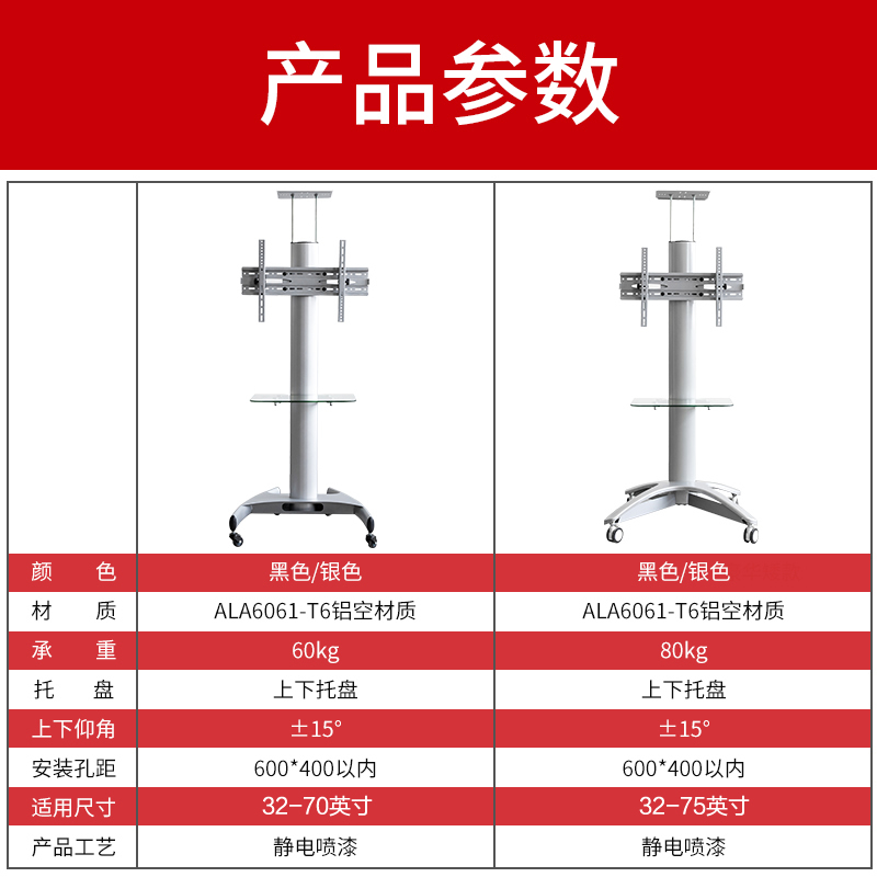 (A) Silver 32-70 inch load-bearing 60KG (Model A) Black 32-70 inch load-bearing 60KG (Model B) Black 32-75 inch bearing
