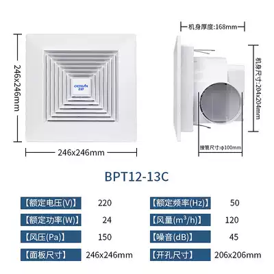 Zhengye 8 inch ceiling exhaust fan powder room kitchen powerful silent suction top duct exhaust fan BPT12-13C