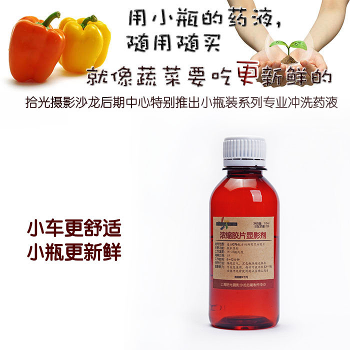 Concentrated black and white developer Kodak D76 approximate formula Film flushing vials of black and white film development powder
