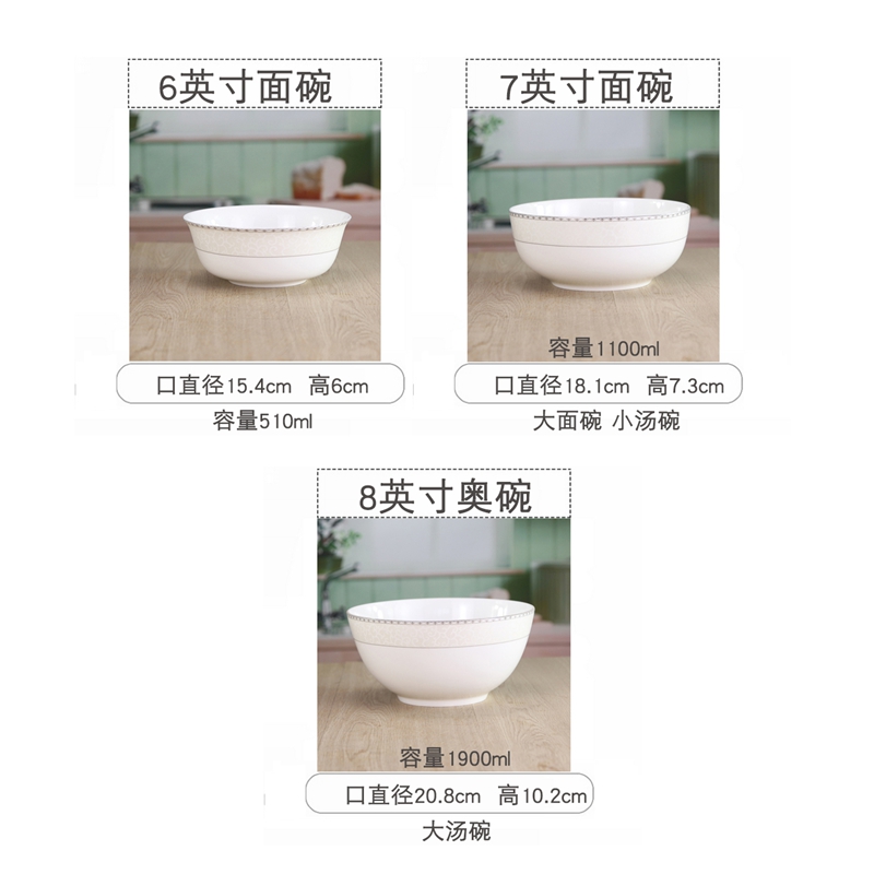 Bone china bowl rice bowl ceramic bowl microwave bowl instant noodle bowl Jane Ao bone china tableware romance small bowl creative soup bowl home