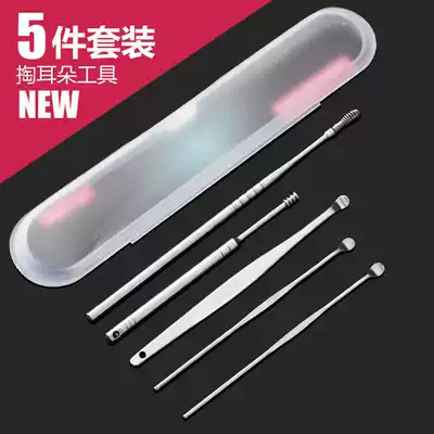 Ear digging spoon Ear picking tool Household professional 8-piece set clip goose feather stick Spiral ear piercing luminous tweezers
