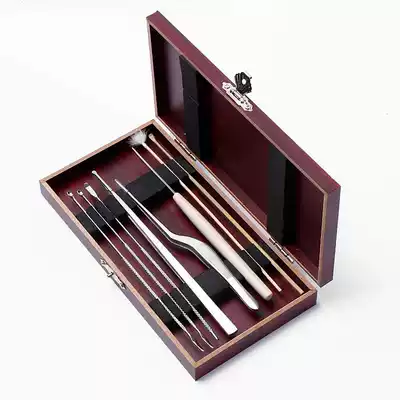 Wooden box 8-piece wooden box 8-piece plastic box 5-piece plastic box 5-piece plastic box 10-piece Rose blonde light ear spoon tweezers set Ear spoon Nail clipper 11-piece set