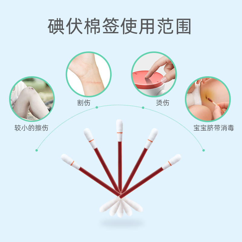 Ancan new 100 Iodine Volt Cotton Stick Disposable Medical Newborn Belly Button with sterilized Baby Iodine Cotton Stick