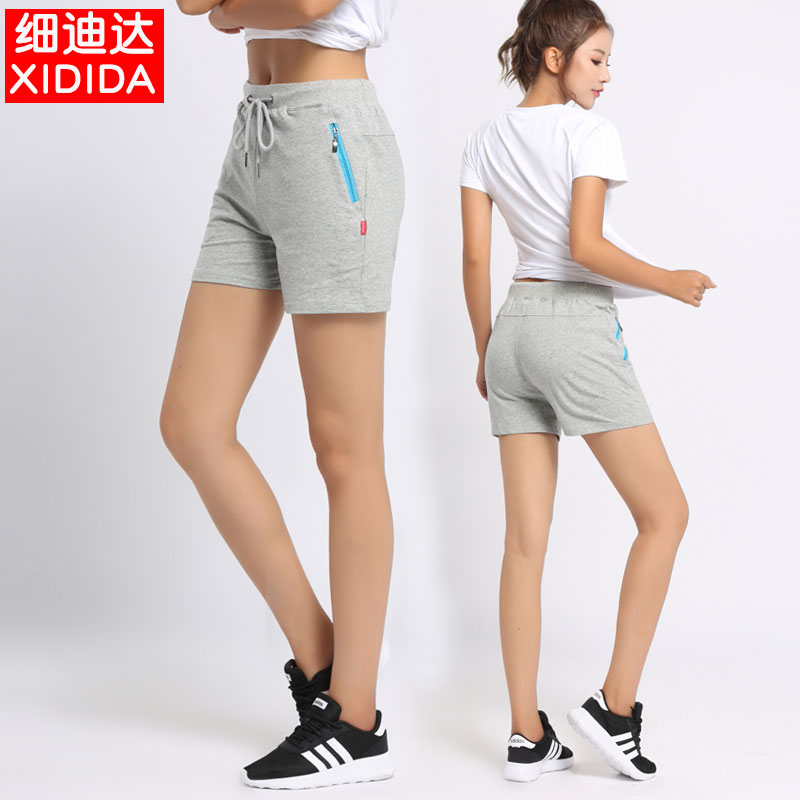 Women's sports shorts thin section summer running fitness large size loose casual pants zipper slimming cotton three-point hot pants
