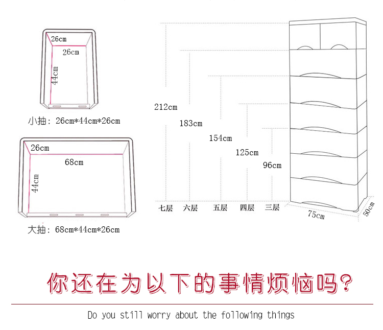 75 wide king-size thickened storage cabinet Plastic drawer storage cabinet Children's clothing finishing box Children's wardrobe