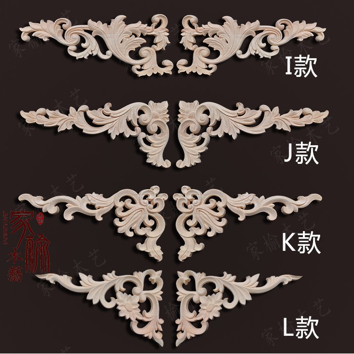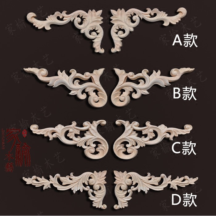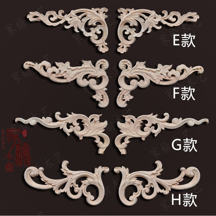 East Yang Wood Carving Fine Carving Corner Flower Eu Style Applique solid wood furniture with applique door head cabinet decorated with diagonal flower line