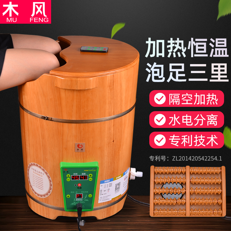 Wood wind soak foot wooden barrel heating constant temperature barrel over calf wooden basin home with high depth fumigation foot washing foot bath wooden basin